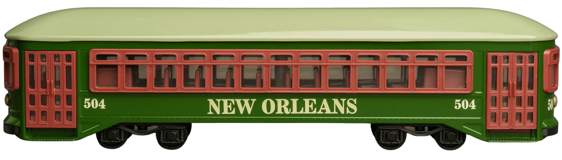Relive every leisurely ride up and down St. Charles Avenue with this collectible replica streetcar from TrolleyFrog.